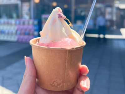 大内山ソフトクリームに、ほんのり香る桜ソース♪