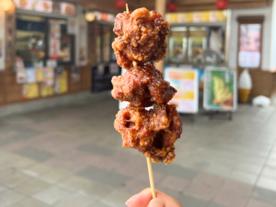 第一回ハイウェイまちなかグランプリで優勝をいただいたからあげです。国産鶏もも肉を「伊勢うどんのタレ」に一晩漬込み調理しております。濃厚な伊勢うどんタレの風味が柔らかな国産鶏に染み込み、外はカリッと内はジューシー。お召し上がり前に酸味の効いた「特製タレ」につけてお渡しいたします。