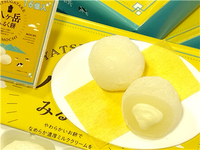 清里ミルクプラントの牛乳を使用した濃厚なクリームが自慢のみるく餅です。