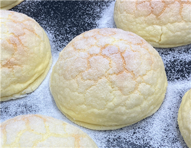 ふんわり柔らかく、強く持つとつぶれてしまうほど繊細なスイートメロンブール。
