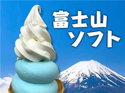 富士山の形をしたソフトクリーム。カップもできます。間近に見える大きな富士山と一緒に記念写真も一枚いかがですか?