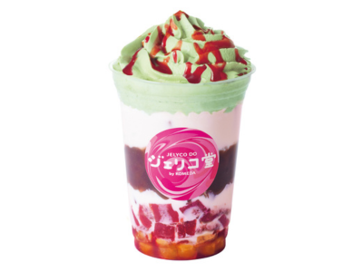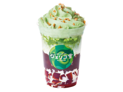 紅茶ジェリーの上品な甘さと、抹茶ミルクのコク深い甘みが、両方堪能できる組み合わせ。