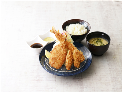 揚げたてアツアツの、贅沢な定食をぜひお楽しみください。 -
