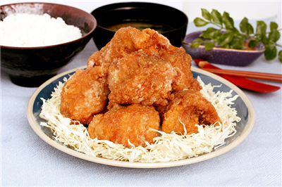 鶏肉を自家製ダレで漬け込んでカリっと揚げた、熱々ジューシーなから揚げがドンと8個!ボリューム満点の定食です