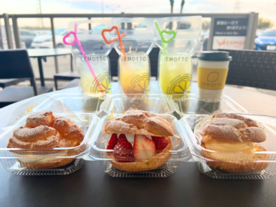 「LEMOTTO」は、名古屋発の老舗喫茶店の「サンモリッツ」が2020年より展開している新業態のレモネード専門店です。可愛らしいビジュアルとこだわり製法による確かな味で若い世代を中心に幅広い層に支持を得ています。 「LEMOTTO 御在所SA(上り線)店」は「LEMOTTO」と「サンモリッツ」の味が同時に楽しめる初のコラボレーション店舗であり、「LEMOTTO」のレモネードはもちろんのこと、「サンモリッツ」の名物である「シュークリーム」も提供するテイクアウト専門店となっております。この機会に是非お立ち寄りください。