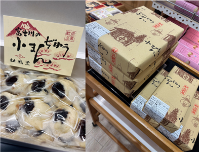 地元富士川の地で大正時代から続く老舗の一口まんじゅうです。原料・製法にとことんこだわり素材本来の味と一口サイズの小さな姿が特徴で、リピーターも多くいつもすぐに売り切れるほどの人気商品です。