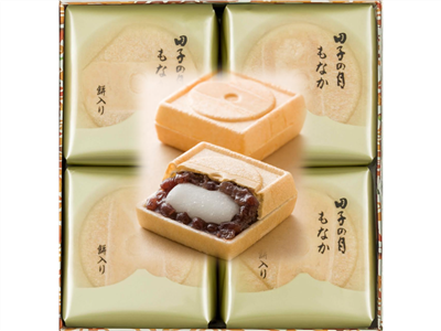 富士の麓で富士山と共に歩んできた地元の御菓子庵 田子の月。その代表菓子が何と言っても社名にもなっている「田子の月もなか」。北海道産小豆を使ったあっさりとした甘味の餡と、求肥はもち米を製粉から自社で行い風味豊かな餅にした、まさに厳選素材と伝統の技によるこだわりの逸品です。