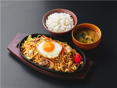 醤油だれに漬け込んだ鶏肉と野菜を、焼きそばに混ぜました!香ばしい香りとは一度食べたらまた食べたくなってしまいます!目玉焼きの黄身を混ぜるのも通の食べ方です!