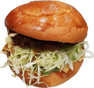 自家製ハンバーグパテを使用。ボリュームいっぱい!