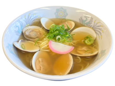 桑名市の海水で育ったプリプリのはまぐりを使用した大山田PA名物はまぐりラーメン。
