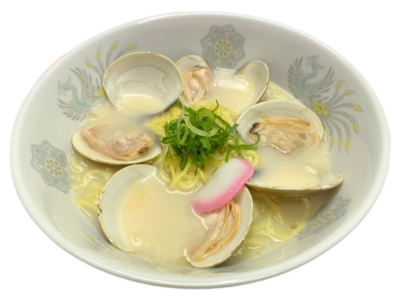 豚骨の出汁に、はまぐりを蒸した汁を入れたスープ。