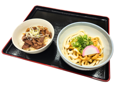 伊勢うどんとミニ松阪肉の牛丼とのセット。
