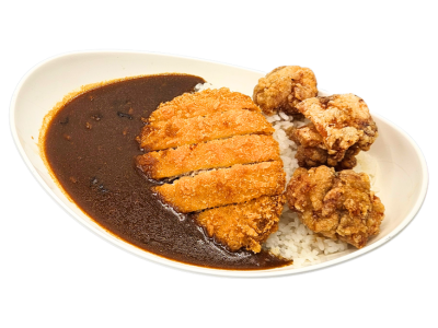 唐揚げ3個、カツ1枚、ライス大盛りとボリューミーなメニュー!コスパ最高です!