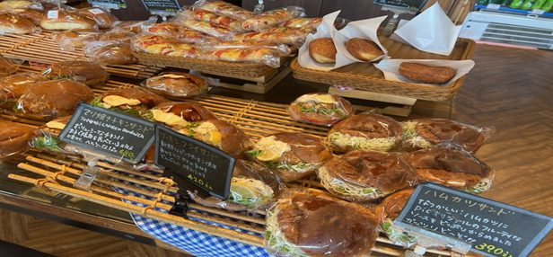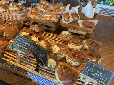 毎日30種類以上のパンを店内で愛情こめて1つ1つ手作り!ドライバーのお客さま向けに1つでお腹いっぱいになるお惣菜系から、運転疲れが吹き飛ぶ甘い系のパンまで勢ぞろい。車内休憩の際になるべくポロポロ落ちないよう配慮してラインナップを考えています。なんといってもリーズナブル!毎月、季節に合わせた新作のパンも登場します♪