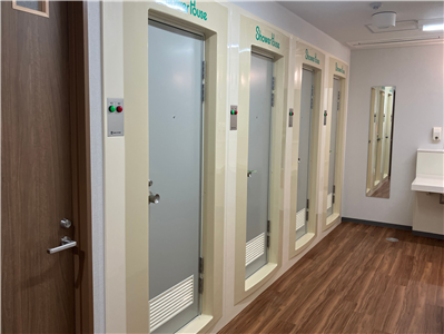 シャワーコーナー24時間 ☆★2025年9月25日新設オープン!★☆ ドライブの疲れをいやし、身も心もリフレッシュできる空間です。24時間どなたでもご利用いただけます。 ■コインシャワー 男性4室/女性2室 《料金》コインシャワー:300円/10分 ■コインランドリー 2台 《料金》洗濯機300円/1回、乾燥機100円/20分 シャワーコーナー24時間 シャワーコーナー