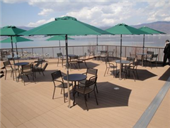建物西側には、諏訪湖と信州の山々眺めながらゆっくりとくつろげる展望ウッドデッキがあります!諏訪湖の爽やかな風を感じながら、絶景をお楽しみください。