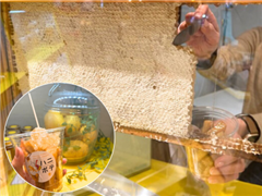 伊勢で大人気のハニポテ、あります! 大正元年創業の老舗養蜂園直営のはちみつ専門店「はちみつ屋 松治郎の舗」では、伊勢おはらい町店で大人気のハニポテをお召し上がりいただけます。フワフワのお芋をはちみつでコーティングし、外側はカリッ、中はふっくら♪ミツバチが作った巣、巣蜜(すみつ)を目の前でカットし、量り売りやハニポテにトッピングいたします。