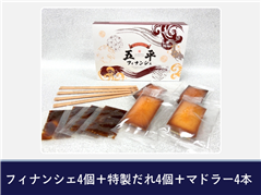(1箱に五平だれ、フィナンシェ、串が4つ入り)