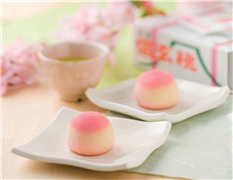 ピーチゼリー入りの白餡を小麦粉生地で包み、色・形ともに山梨県特産の桃に似せた焼き菓子です。