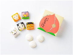 【岡山県 山方永寿堂】「開けて楽しい、食べておいしい」きびだんご。桃太郎、犬、猿、雉、鬼のかわいい包み紙のきびだんごは配りやすさも抜群です。桃のパッケージを開けると桃太郎物語のはじまりはじまり。■価格:550 円 -