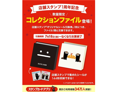 ■店舗スタンプ「オリジナルシール引換券」1枚につき、「コレクションファイル」1冊とお引き替えいたします。※在庫が無くなり次第終了となります。(NEOPASA岡崎 40個、NEOPASA清水 40個)※予告なくサービスの終了、変更を行う場合がございます。※不良品以外の交換は承っていません。 -