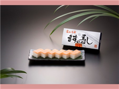 富山名産ますの寿しを手軽に食べられる押寿司タイプに仕上げました。薄紅色のますの身と純白の越中富山米の酢飯の味と色彩の調和をお楽しみ下さい。