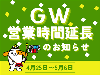 GWにおける全店舗の営業時間についてお知らせいたします。