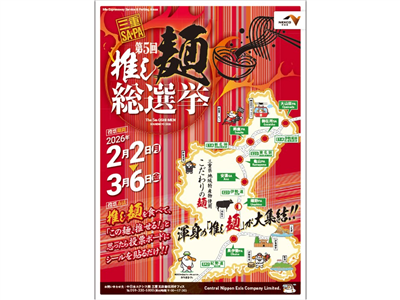 中日本エクシス株式会社 三重支店(三重県四日市市鵜の森、支店長高野(たかの)智治(ともはる))は、三重県内のサービスエリア(SA)・パーキングエリア(PA)の店舗(一部除く)において、昨年大好評であった、自慢の麺料理を競い合いNo.1を決定する“第5回 三重SA・PA 推し麺総選挙”を開催します。